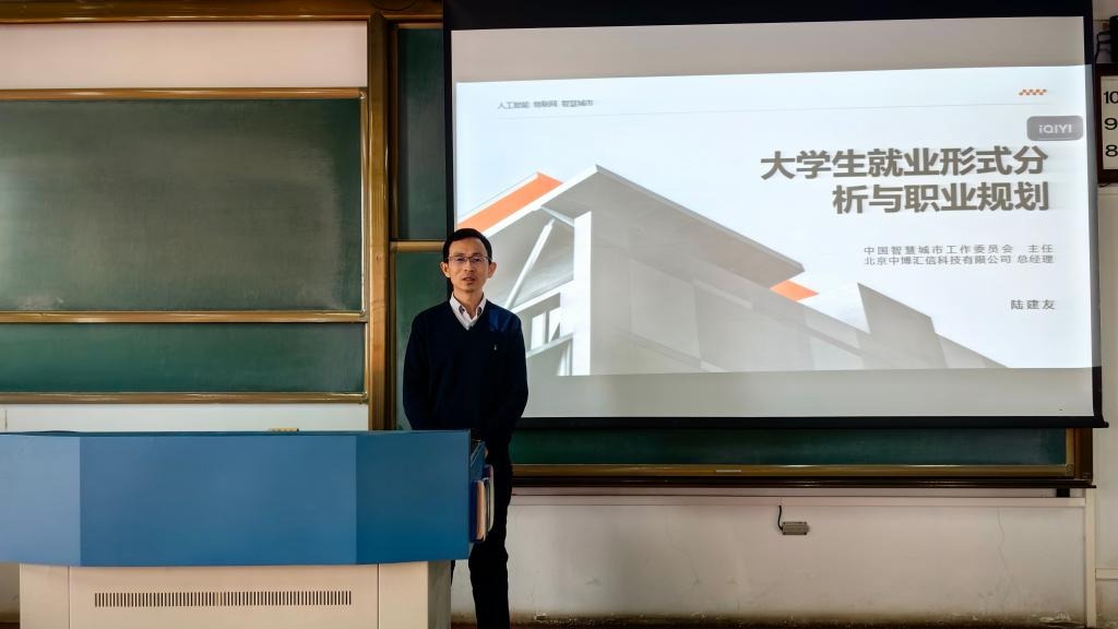 为深化产教融合创新,助力高质量人才培养,3月22日上午,伟德国际victor1946在明德楼406举行“洞见职业未来·共筑发展新篇”主题宣讲活动。特邀中国智慧城市工作委员会项目主任、杰出员工陆建友先生返校开展专题报告,公司党委副书记刘晓慧、学工办主任刘晓东及全体辅导员,21、22级学子共同参与宣讲会。